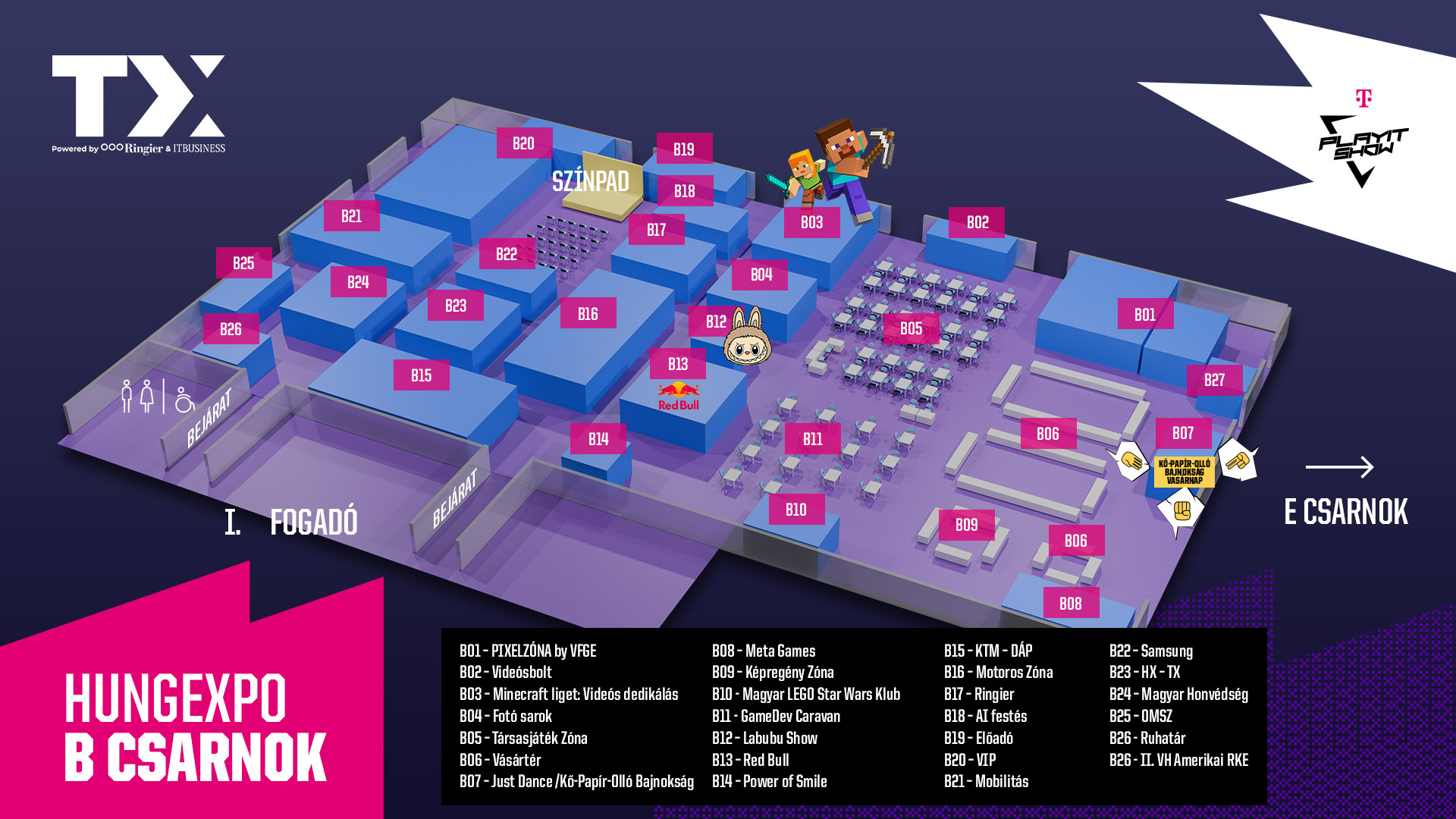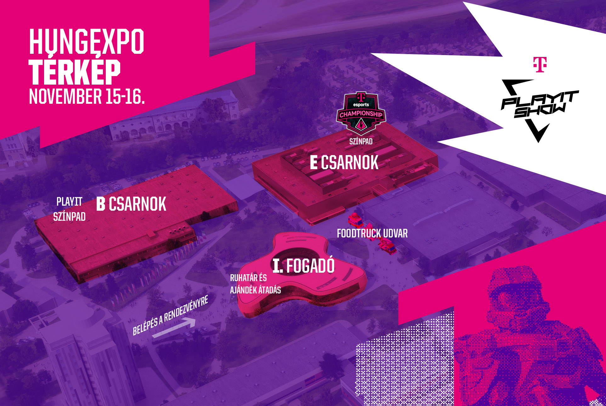 A Telekom PlayIT Show beléptetése a Hungexpo 1-es fogadónál történik.